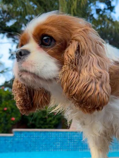 Face of Tri Color Cavalier King Charles dog